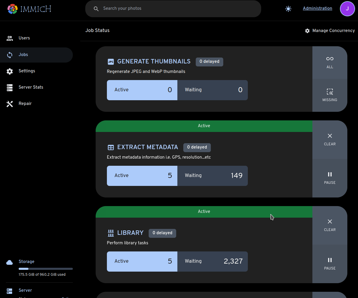 You should see non-zero Active jobs for Library, Generate Thumbnails, and Extract Metadata.